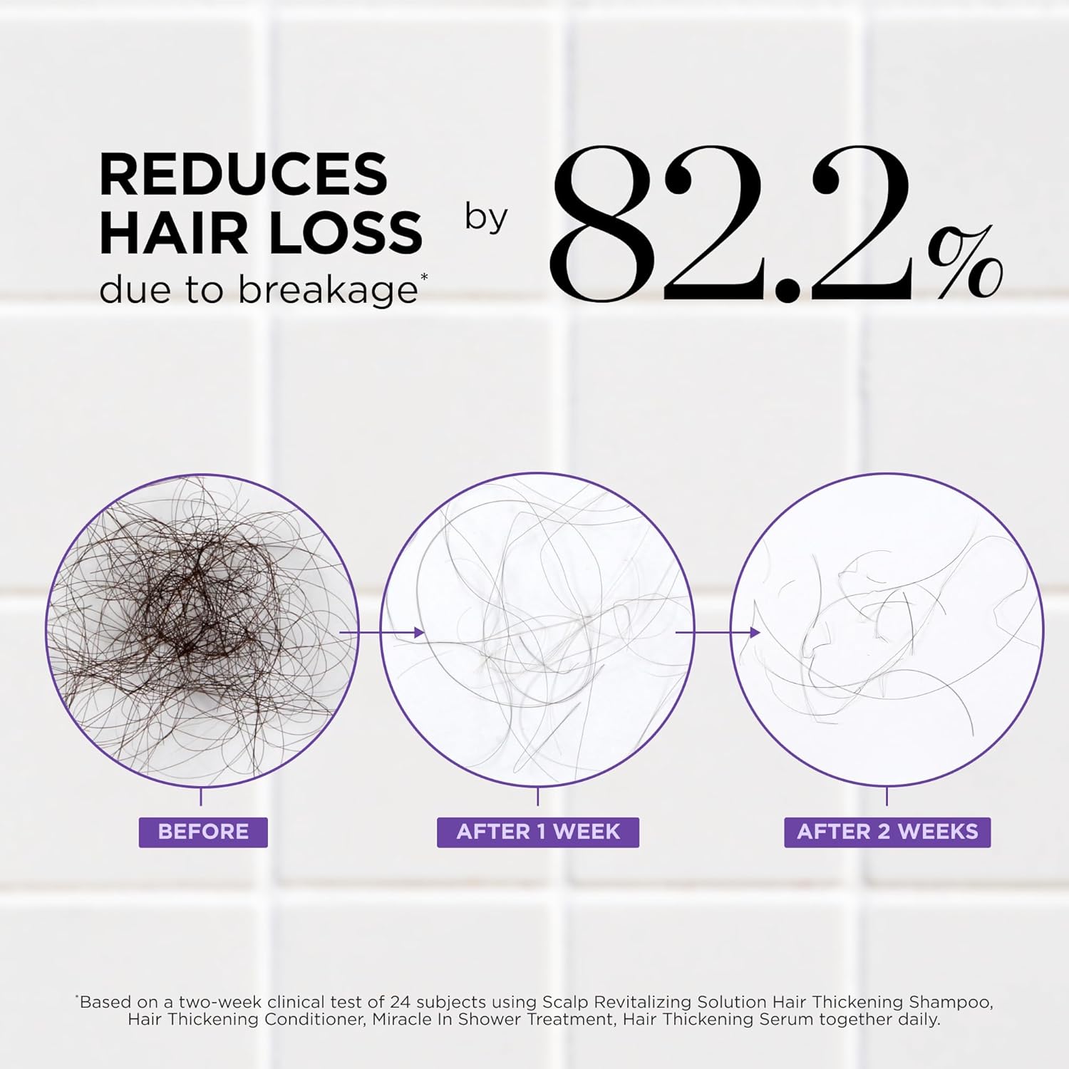 • CLINICALLY PROVEN: In 2 Weeks REDUCES HAIR LOSS due to breakage by 82.2%*, makes hair softer and enhances scalp hydration when used as a regimen.